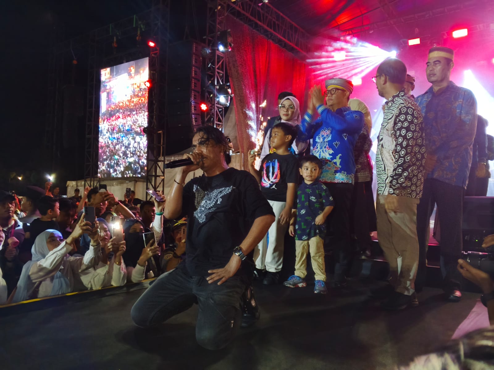 TANA TIDUNG — Penampilan Charly Van Houten menjadi puncak hiburan pada penutupan Festival Tari Kreasi Daerah Pesisir dan Pedalaman Kalimantan Utara 2025 di Ruang Terbuka Hijau (RTH) H. Joesoef Abdullah, Tideng Pale, Kamis malam (27/11/2025).